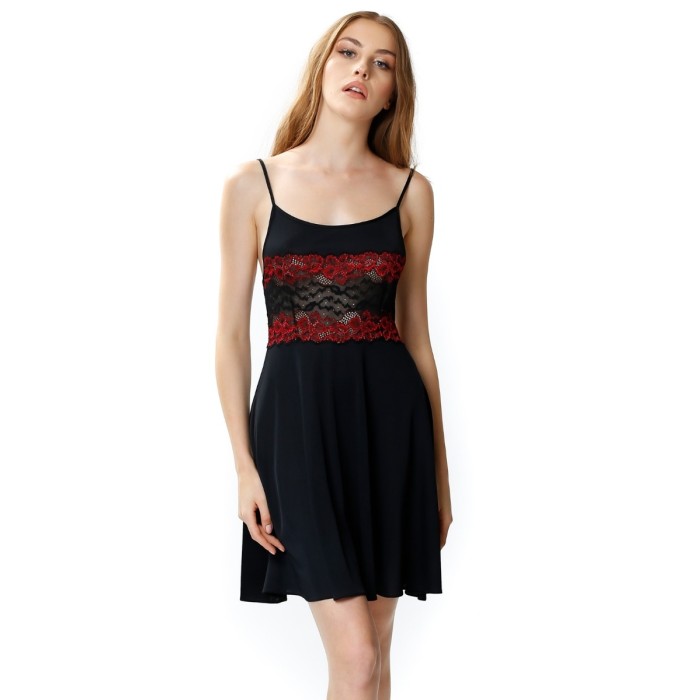 Nocna koszulka Dolly podkreśla talię za sprawą czarno-czerwonej koronki. Idealna na szczupłą talię.