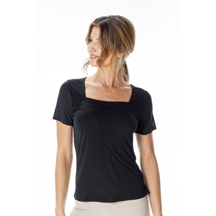 Model DORI zachwyca subtelną prostotą i ponadczasowym stylem. Krótki rękaw oraz gładko wykończony dekolt typu karo dodają jej nowoczesnego wyrazu, jednocześnie podkreślając kobiecą sylwetkę. Materiał miękko układa się na ciele, pozostając przyjemny w dotyku i lekki, nawet podczas długiego noszenia.